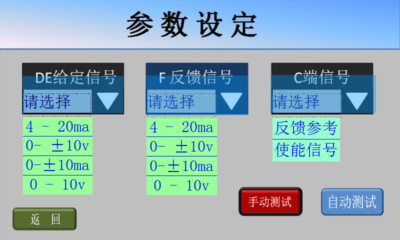 7、手動測試基本正常后,點擊屏幕左下方的返回鍵,返回參數(shù)設定畫面;